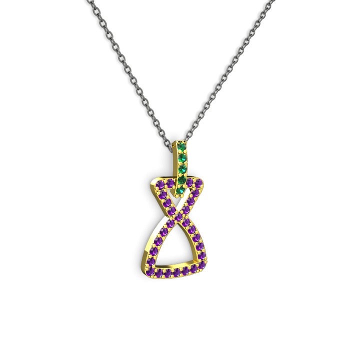 Yeşil kuvars ve ametist 8 ayar altın kolye (40 cm gümüş rolo zincir)
