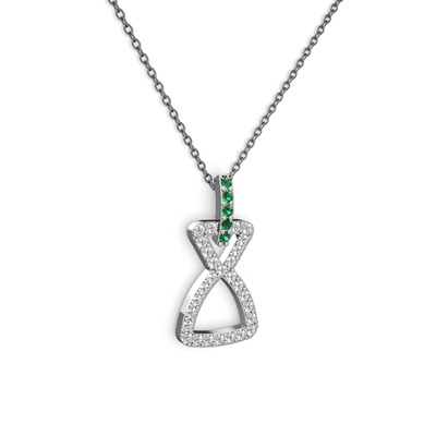 Yeşil kuvars ve pırlanta 14 ayar beyaz altın kolye (0.374 karat, 40 cm gümüş rolo zincir)