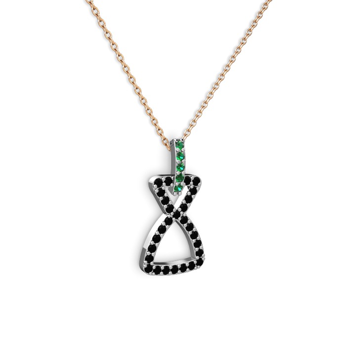 Yeşil kuvars ve siyah zirkon 925 ayar gümüş kolye (40 cm rose altın rolo zincir)