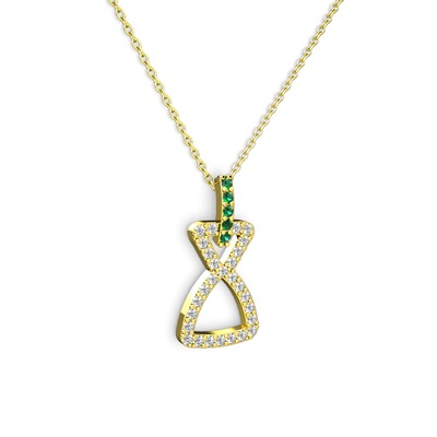 Yeşil kuvars ve swarovski 925 ayar altın kaplama gümüş kolye (40 cm gümüş rolo zincir)