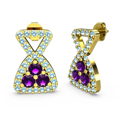 Akuamarin ve ametist 14 ayar altın küpe