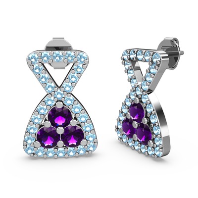 Akuamarin ve ametist 18 ayar beyaz altın küpe