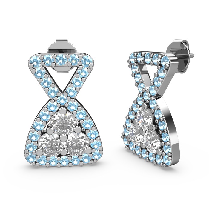 Akuamarin ve beyaz zirkon 8 ayar beyaz altın küpe