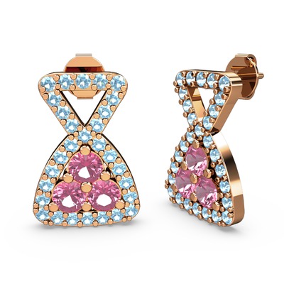 Akuamarin ve pembe kuvars 14 ayar rose altın küpe