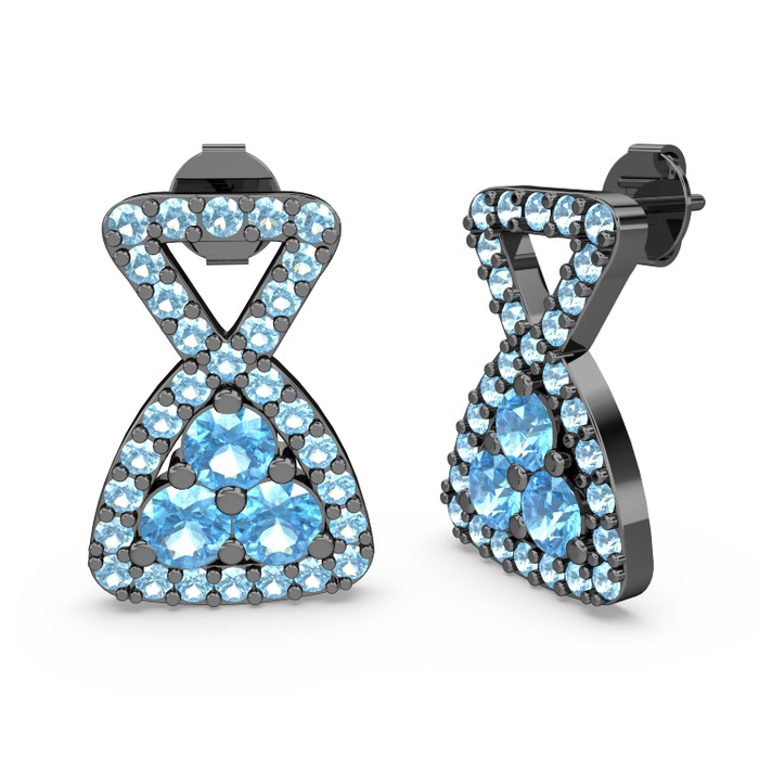 Akuamarin 925 ayar siyah rodyum kaplama gümüş küpe