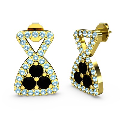 Akuamarin ve siyah zirkon 8 ayar altın küpe