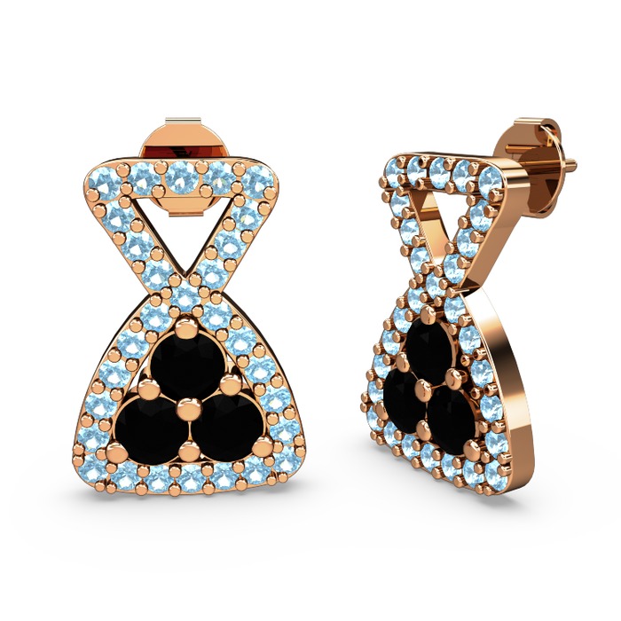 Akuamarin ve siyah zirkon 8 ayar rose altın küpe