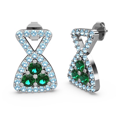Akuamarin ve yeşil kuvars 8 ayar beyaz altın küpe