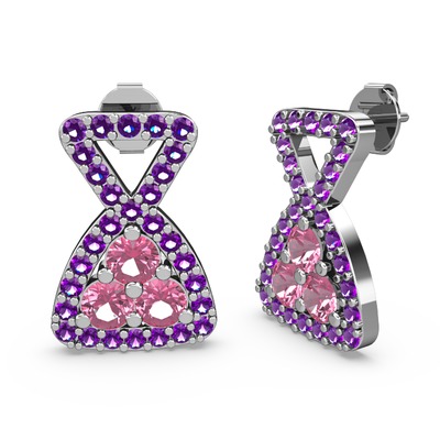Ametist ve pembe kuvars 14 ayar beyaz altın küpe