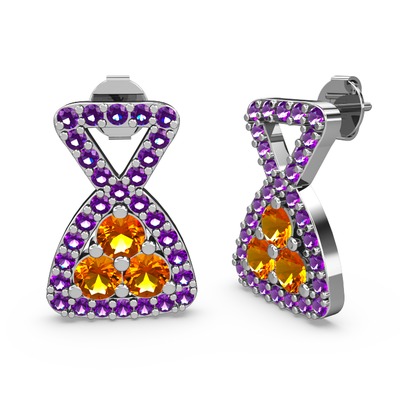 Ametist ve sitrin 18 ayar beyaz altın küpe
