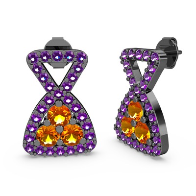 Ametist ve sitrin 925 ayar siyah rodyum kaplama gümüş küpe