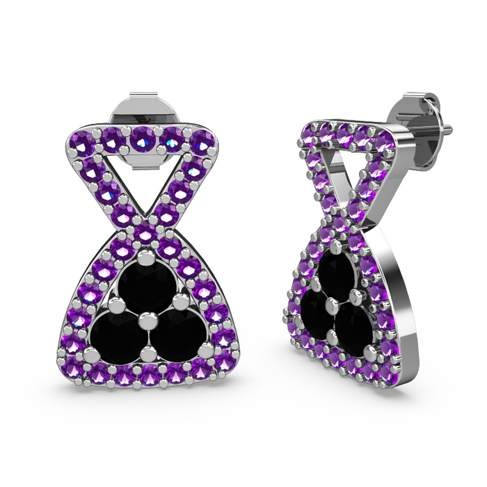 Ametist ve siyah zirkon 925 ayar gümüş küpe