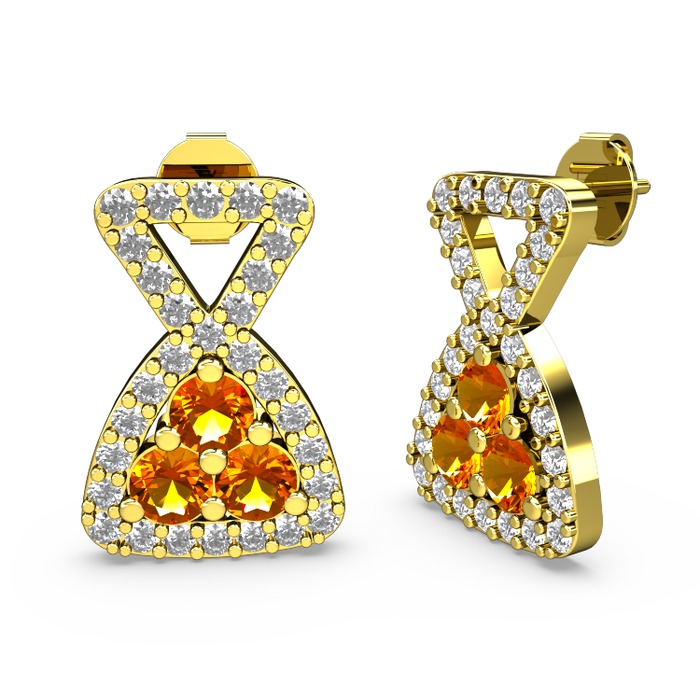 Beyaz zirkon ve sitrin 14 ayar altın küpe