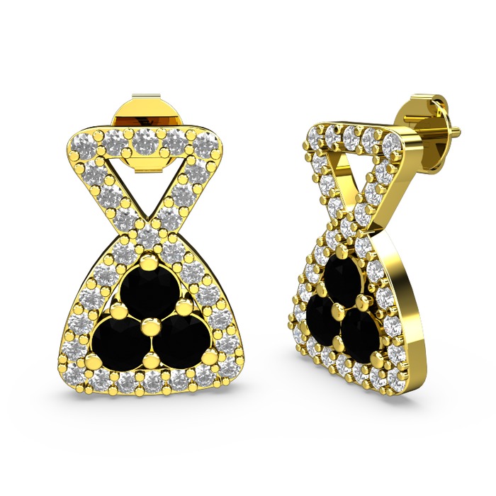 Beyaz zirkon ve siyah zirkon 925 ayar altın kaplama gümüş küpe