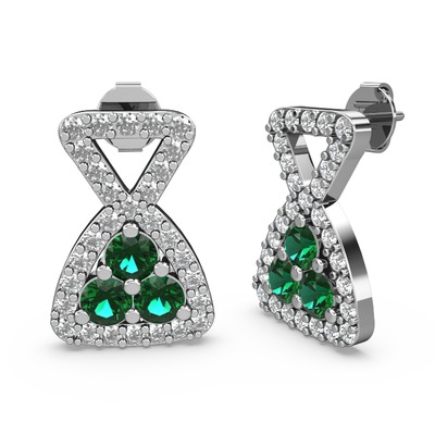 Beyaz zirkon ve yeşil kuvars 18 ayar beyaz altın küpe