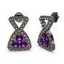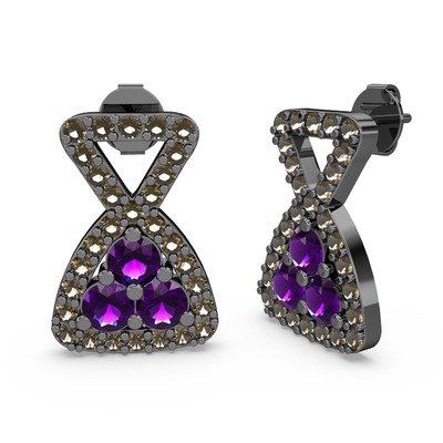 Dumanlı kuvars ve ametist 925 ayar siyah rodyum kaplama gümüş küpe
