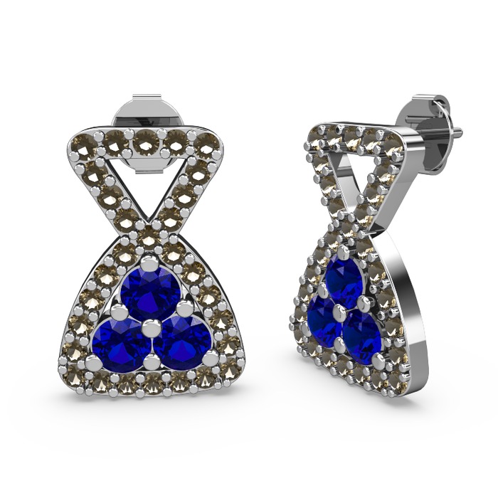 Dumanlı kuvars ve lab safir 18 ayar beyaz altın küpe