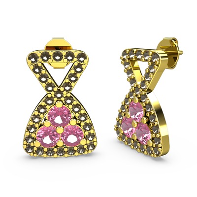 Dumanlı kuvars ve pembe kuvars 18 ayar altın küpe
