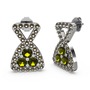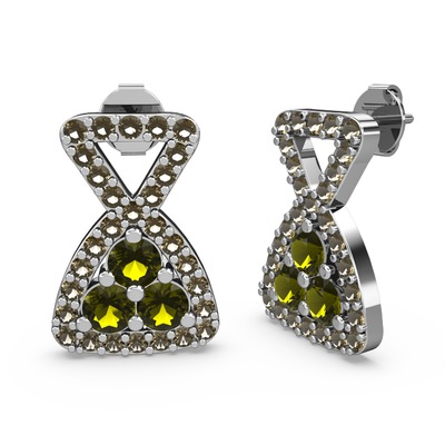 Dumanlı kuvars ve peridot 18 ayar beyaz altın küpe