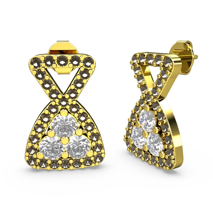 Dumanlı kuvars ve pırlanta 14 ayar altın küpe (0.638 karat)