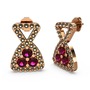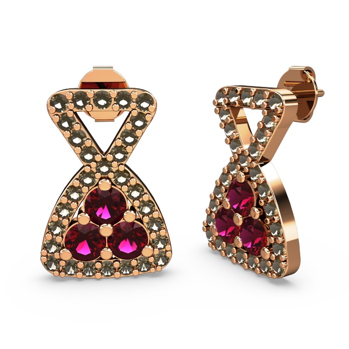 Dumanlı kuvars ve rodolit garnet 14 ayar rose altın küpe