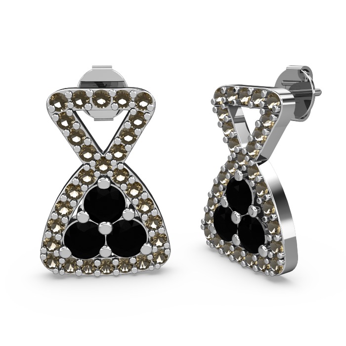 Dumanlı kuvars ve siyah zirkon 18 ayar beyaz altın küpe