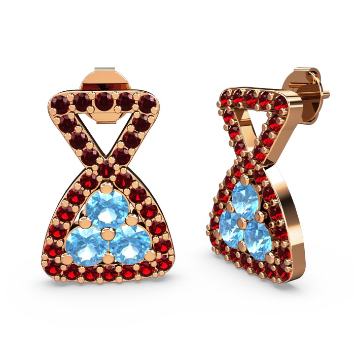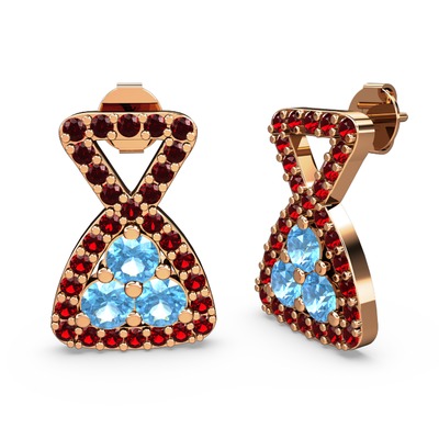 Garnet ve akuamarin 18 ayar rose altın küpe