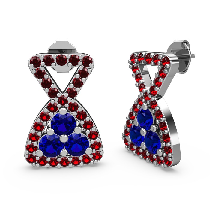 Garnet ve lab safir 14 ayar beyaz altın küpe