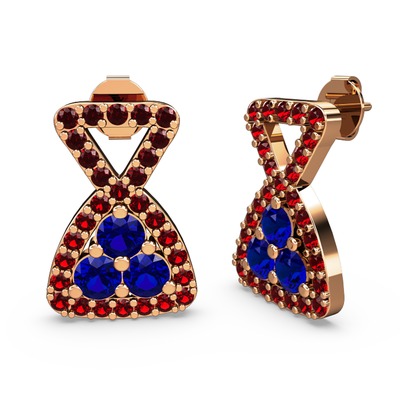 Garnet ve lab safir 14 ayar rose altın küpe