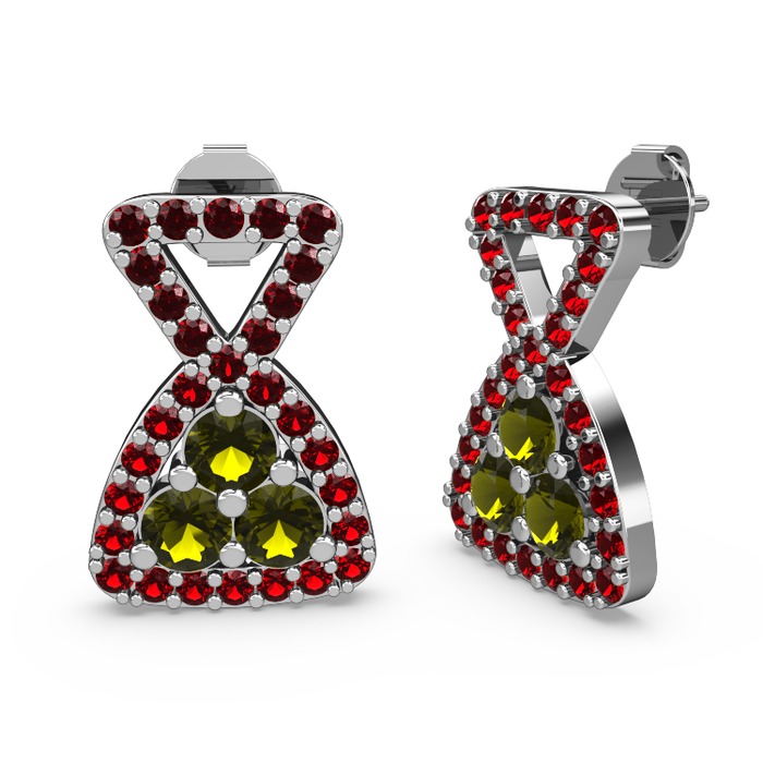 Garnet ve peridot 8 ayar beyaz altın küpe