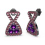 Kök yakut ve ametist 925 ayar siyah rodyum kaplama gümüş küpe