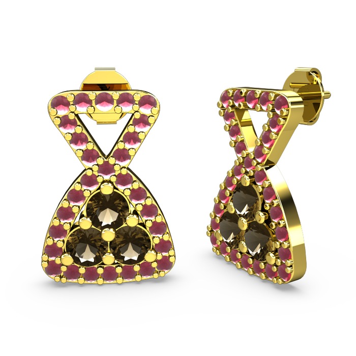 Kök yakut ve dumanlı kuvars 18 ayar altın küpe