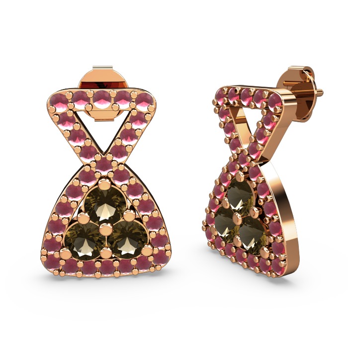 Kök yakut ve dumanlı kuvars 925 ayar rose altın kaplama gümüş küpe