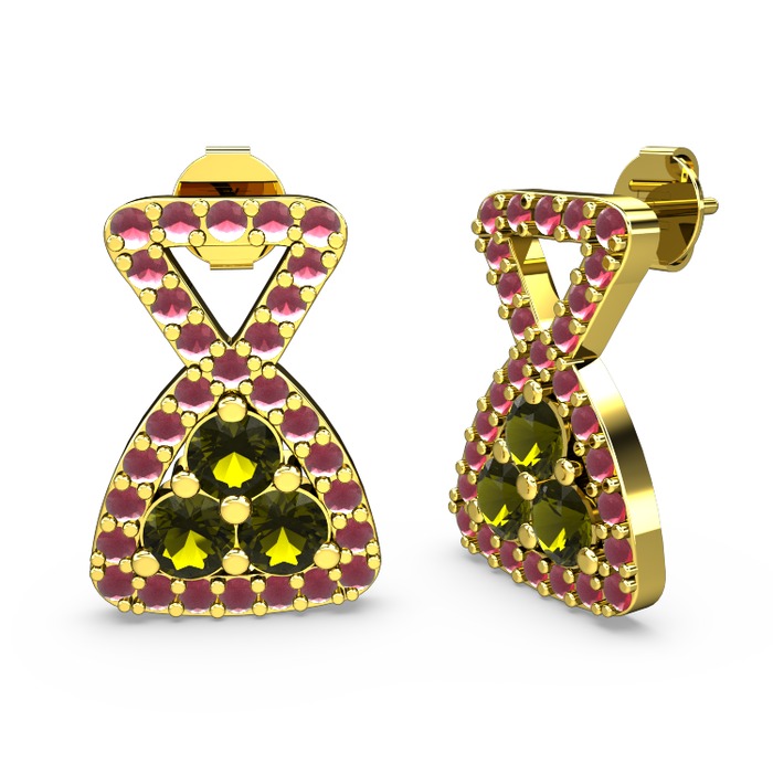 Kök yakut ve peridot 925 ayar altın kaplama gümüş küpe