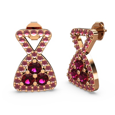 Kök yakut ve rodolit garnet 18 ayar rose altın küpe