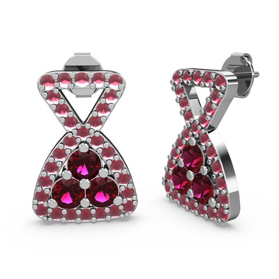 Kök yakut ve rodolit garnet 8 ayar beyaz altın küpe