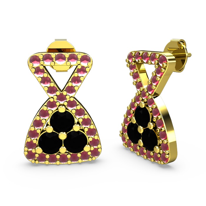 Kök yakut ve siyah zirkon 925 ayar altın kaplama gümüş küpe