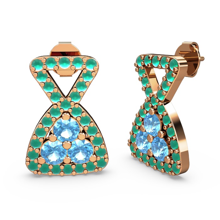Kök zümrüt ve akuamarin 18 ayar rose altın küpe