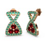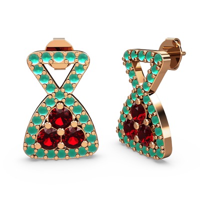 Kök zümrüt ve garnet 14 ayar rose altın küpe