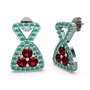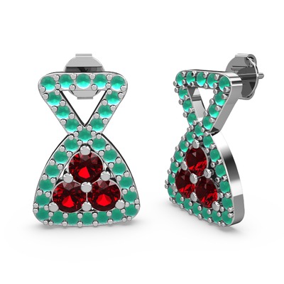 Kök zümrüt ve garnet 8 ayar beyaz altın küpe