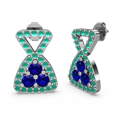 Kök zümrüt ve lab safir 18 ayar beyaz altın küpe