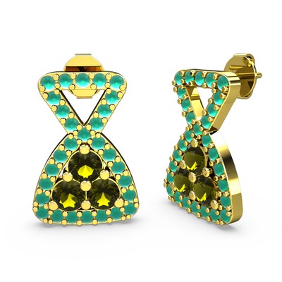 Kök zümrüt ve peridot 18 ayar altın küpe