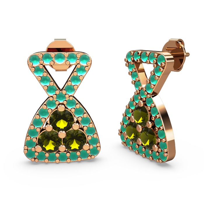 Kök zümrüt ve peridot 18 ayar rose altın küpe