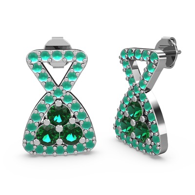 Kök zümrüt ve yeşil kuvars 925 ayar gümüş küpe