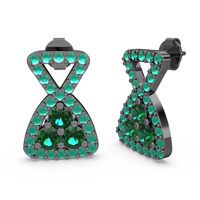 Kök zümrüt ve yeşil kuvars 925 ayar siyah rodyum kaplama gümüş küpe