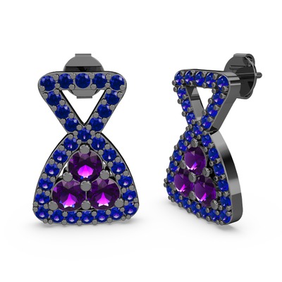 Lab safir ve ametist 925 ayar siyah rodyum kaplama gümüş küpe