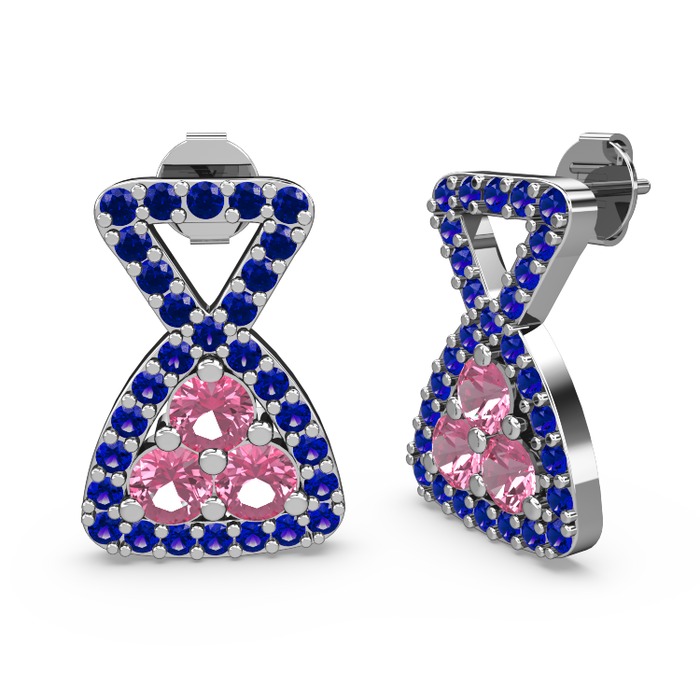 Lab safir ve pembe kuvars 14 ayar beyaz altın küpe