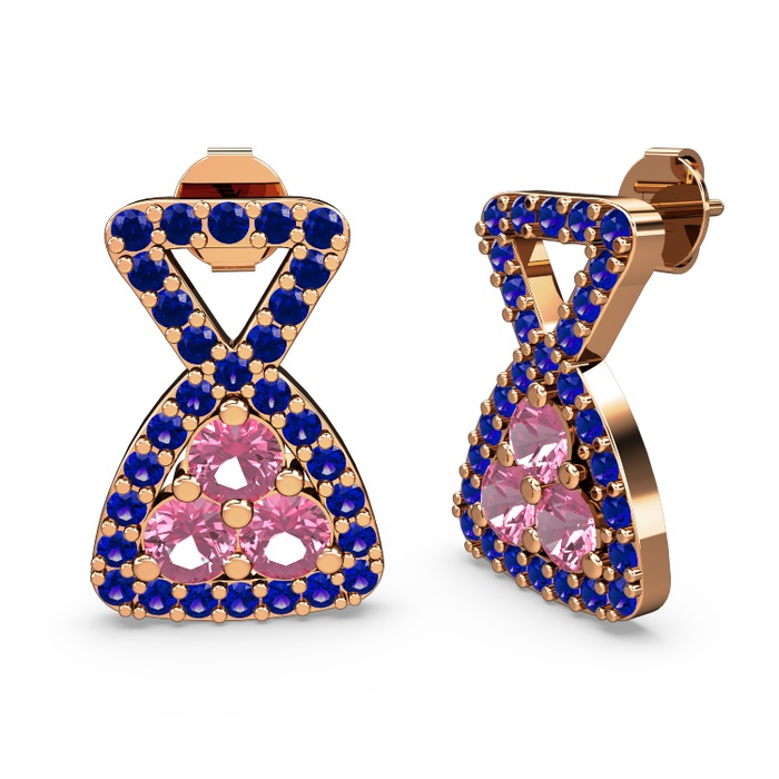 Lab safir ve pembe kuvars 18 ayar rose altın küpe