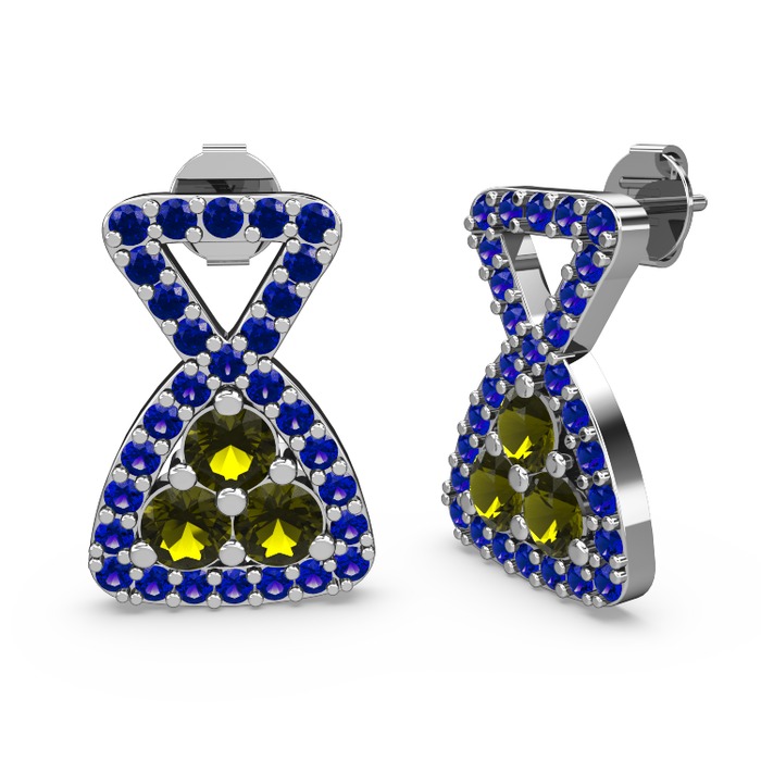Lab safir ve peridot 18 ayar beyaz altın küpe