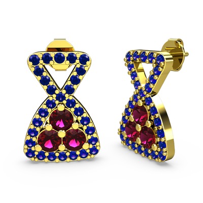 Lab safir ve rodolit garnet 925 ayar altın kaplama gümüş küpe